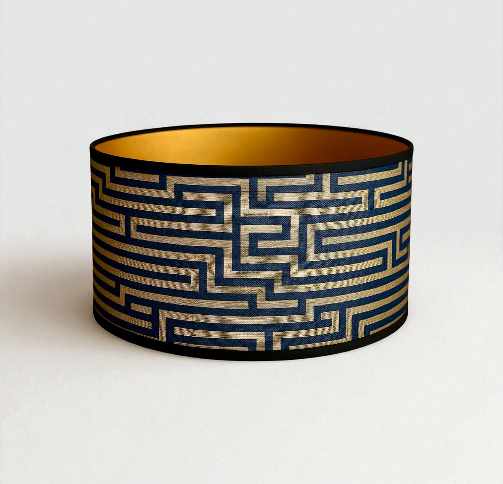 Ένα πολυτελές καπέλο φωτιστικού εμπνευσμένο από το διαχρονικό ύφος του οίκου Versace. Το ύφασμα υψηλής ποιότητας σε βαθύ μπλε και χρυσές λεπτομέρειες αποπνέει αρχοντιά και δυναμισμό, ενώ η χρυσή εσωτερική επένδυση ενισχύει τη λάμψη του φωτός, δημιουργώντας μια αίσθηση πλούτου και κομψότητας. Ιδανικό για χώρους με εκλεπτυσμένο γούστο, προσθέτει statement χαρακτήρα σε κάθε διακόσμηση από κλασική μέχρι σύγχρονη πολυτέλεια.