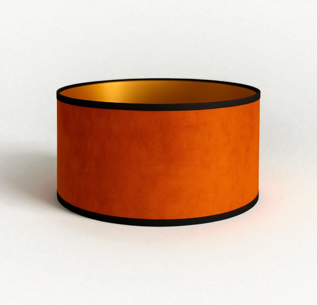 Ένα κομψό καπέλο φωτιστικού από βελούδινο suede ύφασμα σε ζεστή πορτοκαλί απόχρωση και χρυσή εσωτερική επένδυση που χαρίζει αίσθηση πολυτέλειας και θαλπωρής σε κάθε χώρο. Το υψηλής ποιότητας ύφασμα διαχέει απαλά το φως, δημιουργώντας μια ατμόσφαιρα ζεστή και φιλόξενη. Ιδανικό για σαλόνι, υπνοδωμάτιο ή χώρο υποδοχής, προσθέτει διακριτική λάμψη και χαρακτήρα σε κάθε διακόσμηση από μοντέρνα έως κλασική.