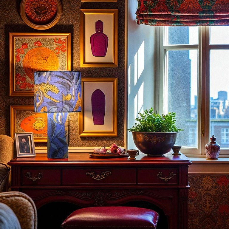 An elegant lamp set made of the same fabric with red background and patterns that give a sense of warmth and natural beauty to your space.